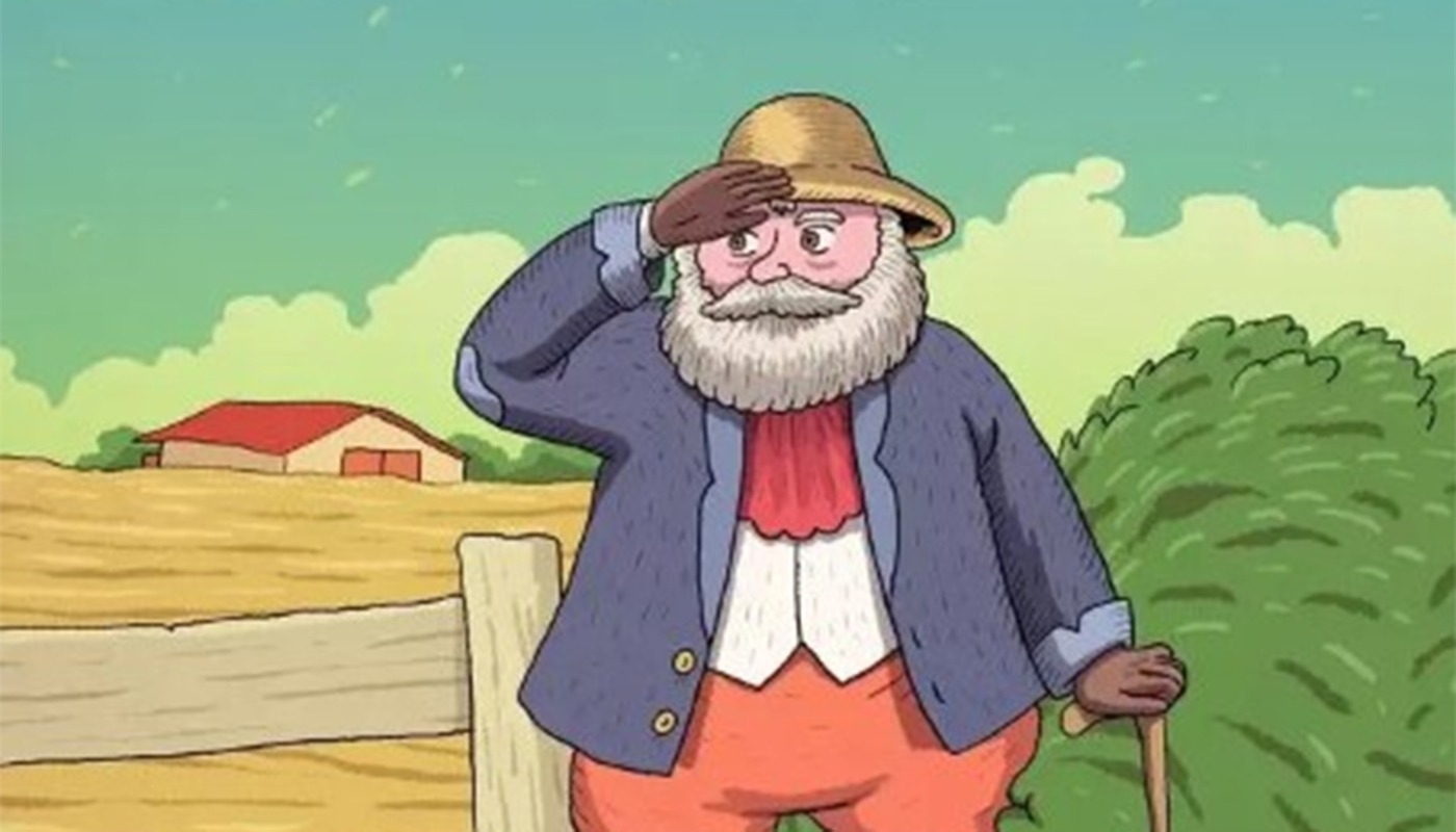 Imaginea aparent simplă îl prezintă pe un bătrân așezat…